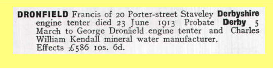 Francis Dronfield died, aged 67, on 23 Jun 1913.