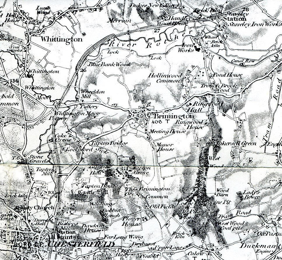 up again in the Old Fields (farm) area. Brimington Common had fairly recently been enclosed – so few buildings are shown on it. The extent of enclosed area can