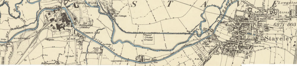 Staveley, a village, a township, and a parish in Derbyshire. The village stands near the M.R. and