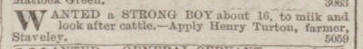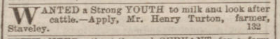 Job Turton died in Staveley in 1860 and was buried on 18 Jul 1860.
