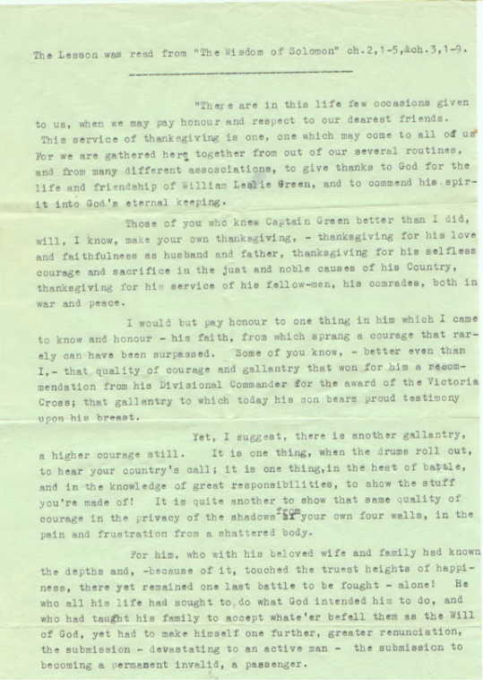friendship of William Leslie Green, and to commend his spirit into God’s