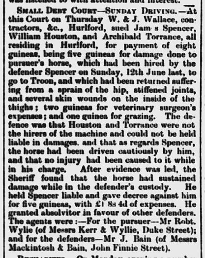 Spencer and Archibald Torrance, all residing in Hurlford appeared in the Small Debt