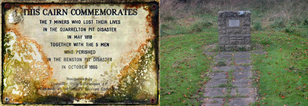 A Cairn commemorating the two local pit disasters was erected at Wee Wood, Johnstone, Renfrewshire.