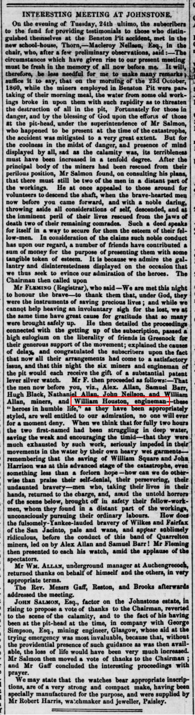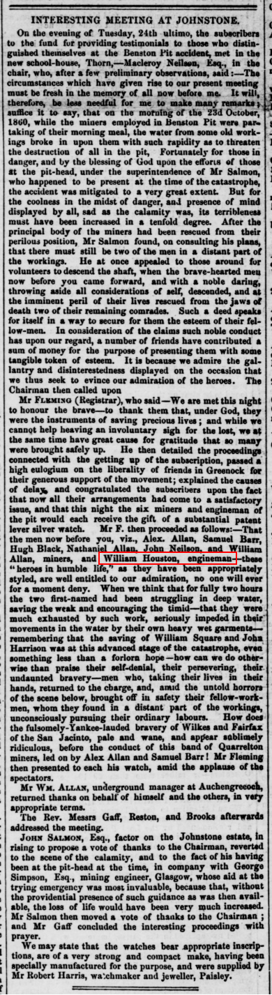 Over 125 years later the local Paisley newspaper recounted details of the Benston