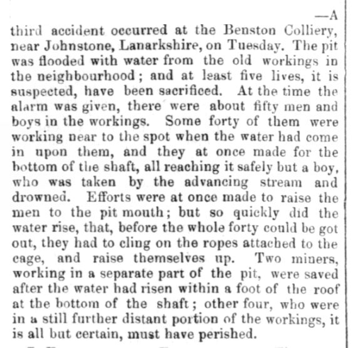 the Derbyshire Courier dated 27 Oct 1860 in what seems to be a ‘pit accidents of the
