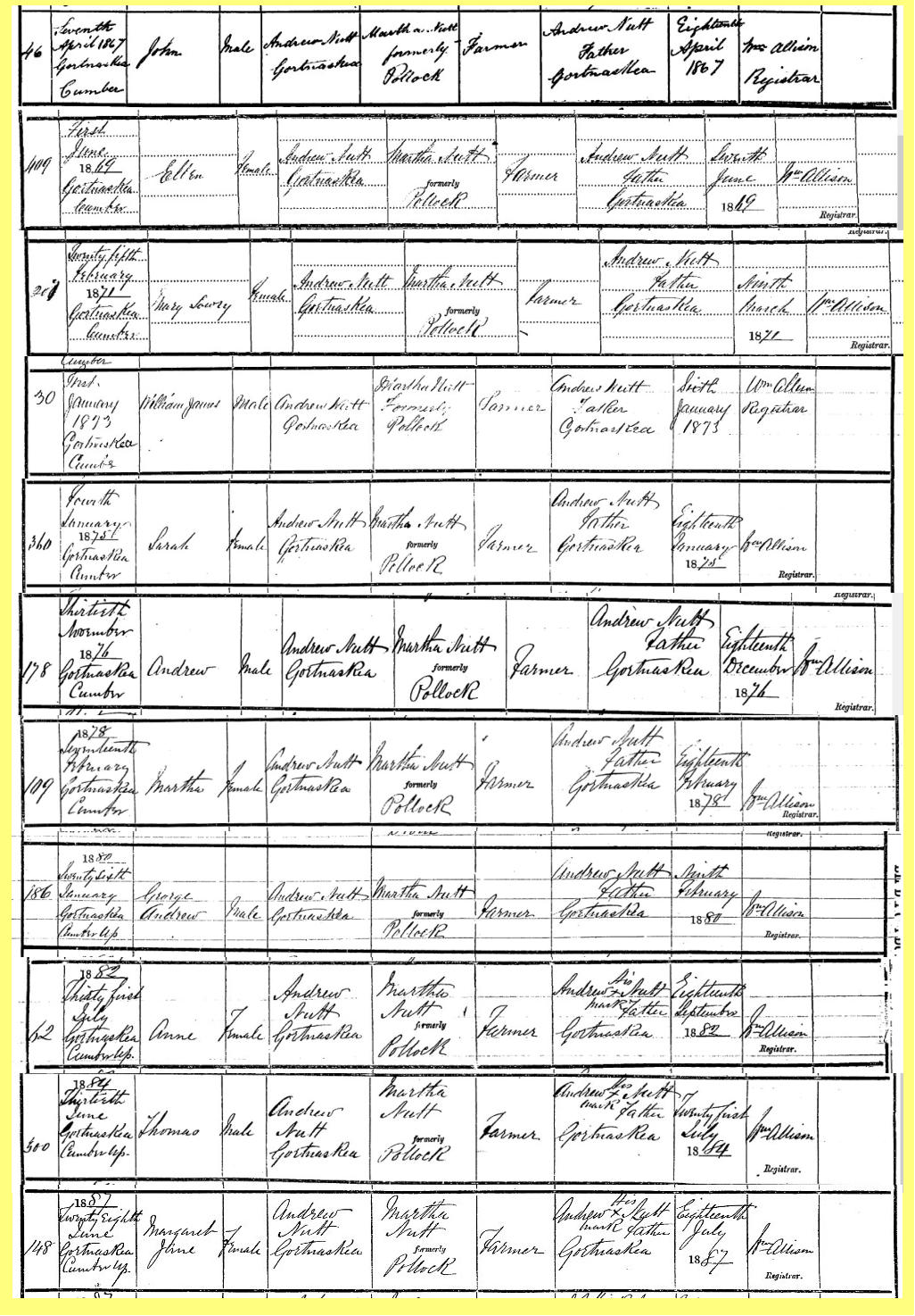 Birth Registrations of Andrew and Martha Nutt’s Children