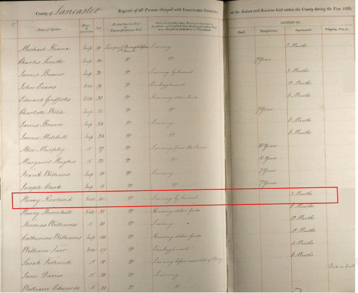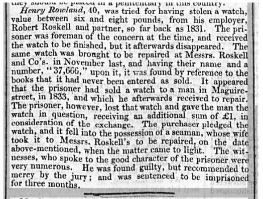 In 1839 Henry Rowland was convicted of stealing a watch eight years