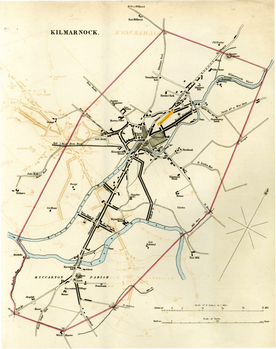 marked on the 1831 map of Kilmarnock below and has quite a lot of history, a miscellany of which follows.