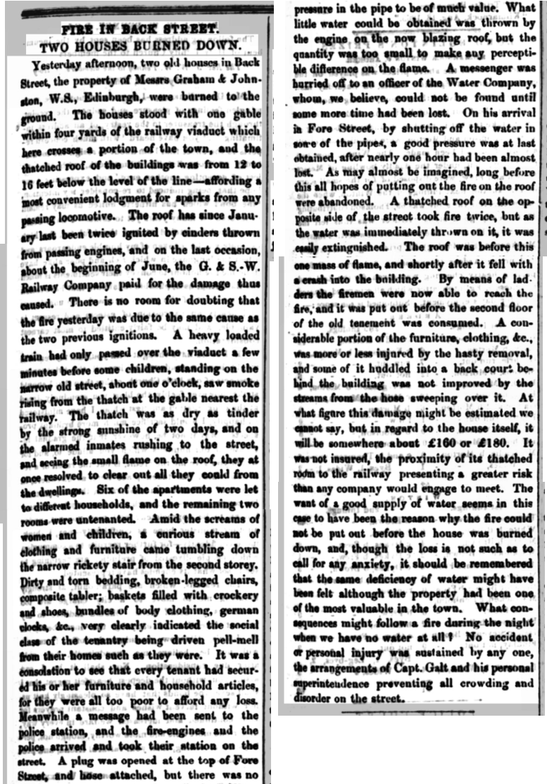 A detailed account of the burning down of two houses in Back Street despite the best efforts of the fire brigade and