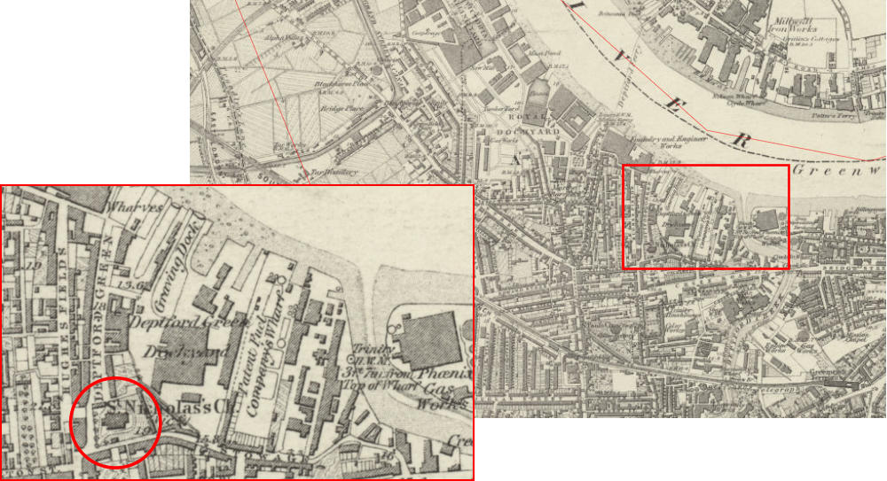 Deptford was split in 1730 with the southern part around the new church becoming Deptford St Paul. St Nicholas parish included the old maritime settlement