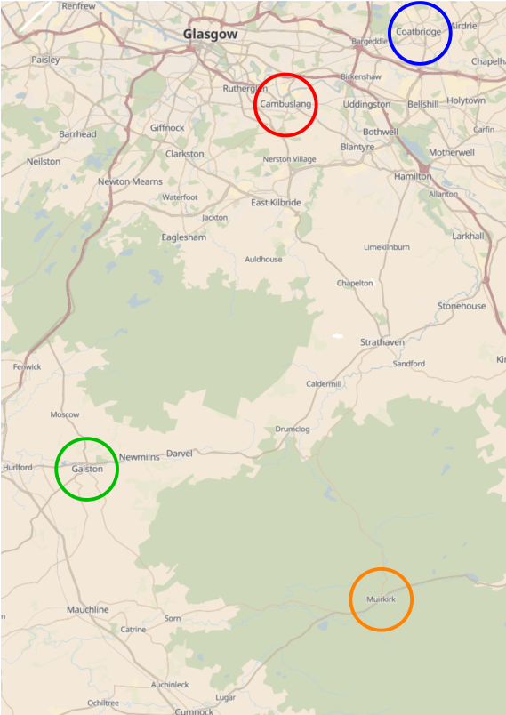 km) north of Hamilton, now in South Lanarkshire. It contained the town of Coatbridge.