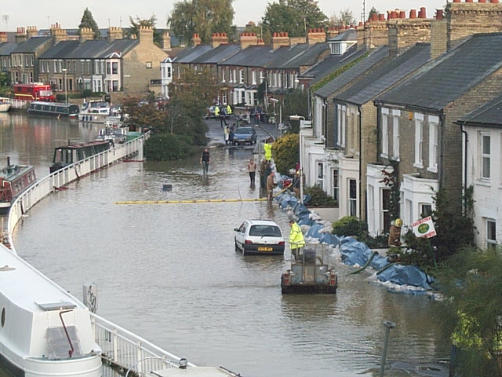 River Cam overflowed its banks (left).