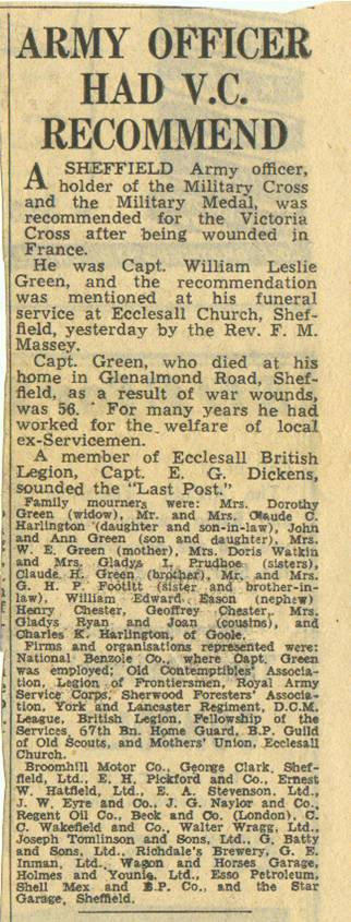 William Leslie Green died on September 5, 1951, in Sheffield, at the age of 55 of heart failure