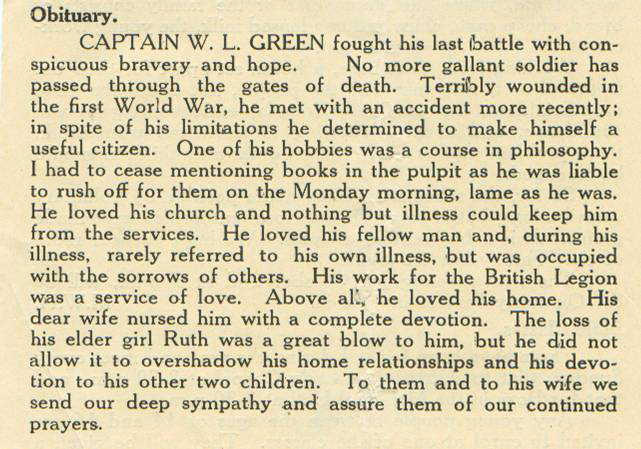 friendship of William Leslie Green, and to commend his spirit into God’s