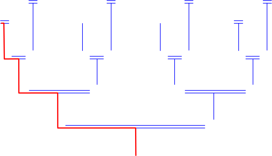 There are some interesting stories about Harlingtons in other branches than the main one we have been following, shown by the red lines. These additional persons are outlined in red in the diagram below and their stories can be selected by clicking on their name boxes.