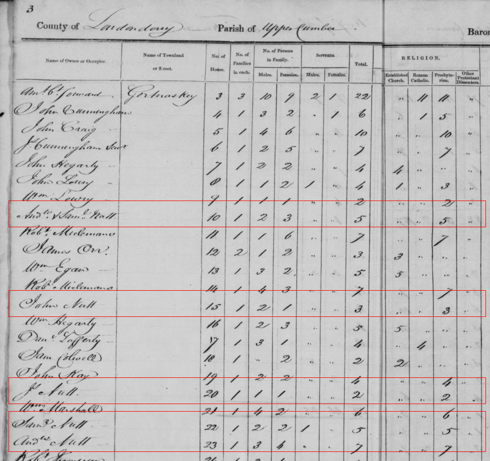 Fortunately the 1831 records for the Parish of Upper Cumber still exist and show a number of Nutt families living there, including two Andrew Nutts.