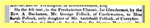 Rev A. Buchanan, Mr George Pollock of Castlewarren to Miss Sarah Pollock,