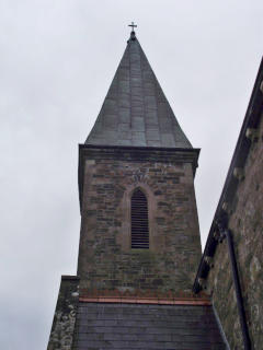 walls. The copper spire was erected in 1960. Inside the porch there are stairs into the gallery, below which are the