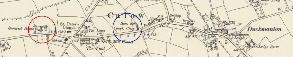 By 1939 they had produced at least five children and were living in Somerset House Farm, Top Road, Calow (red circle) with Eva’s father, Charles Wilkins.