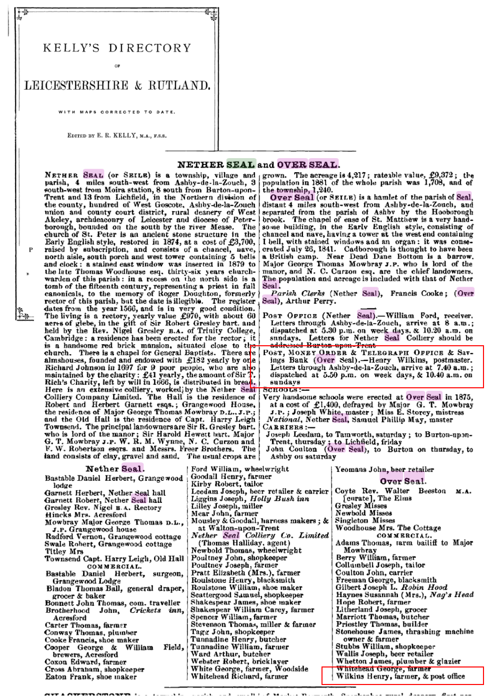 the Kelly’s Directory of Leicestershire and Rutland, 1881 Edition.